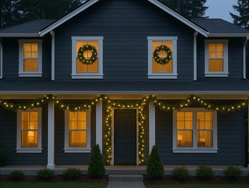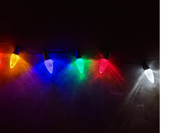 These are our standard Christmas Lights that are usually hung on the roof and walkways. We offer a variety of colors which are fully customizable (but rainbow, candy cane, and warm white are most popular)! The wires are cut for each individual home so that you don't have ugly wires hanging around, and all lights are hung 100% staple free.